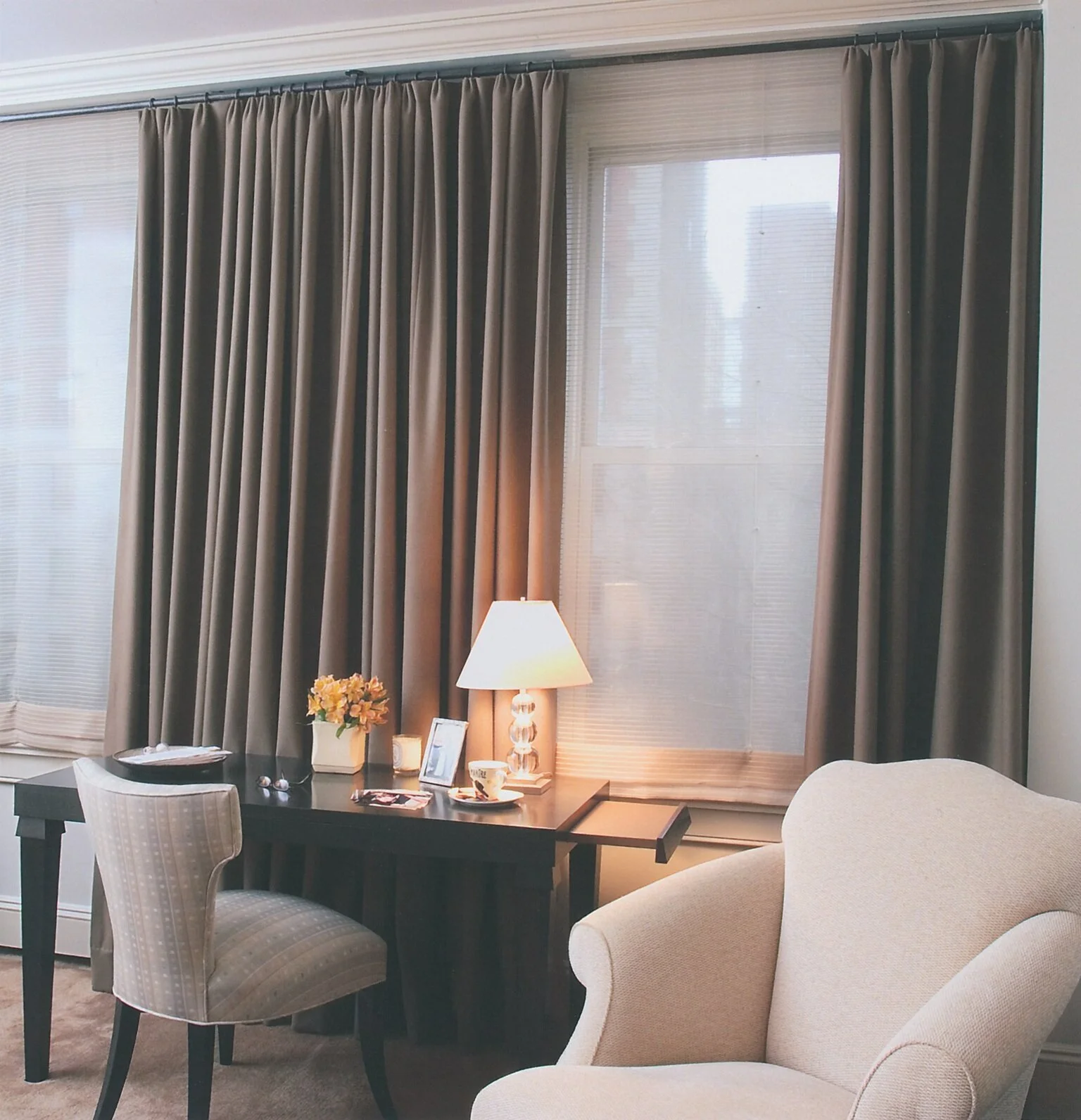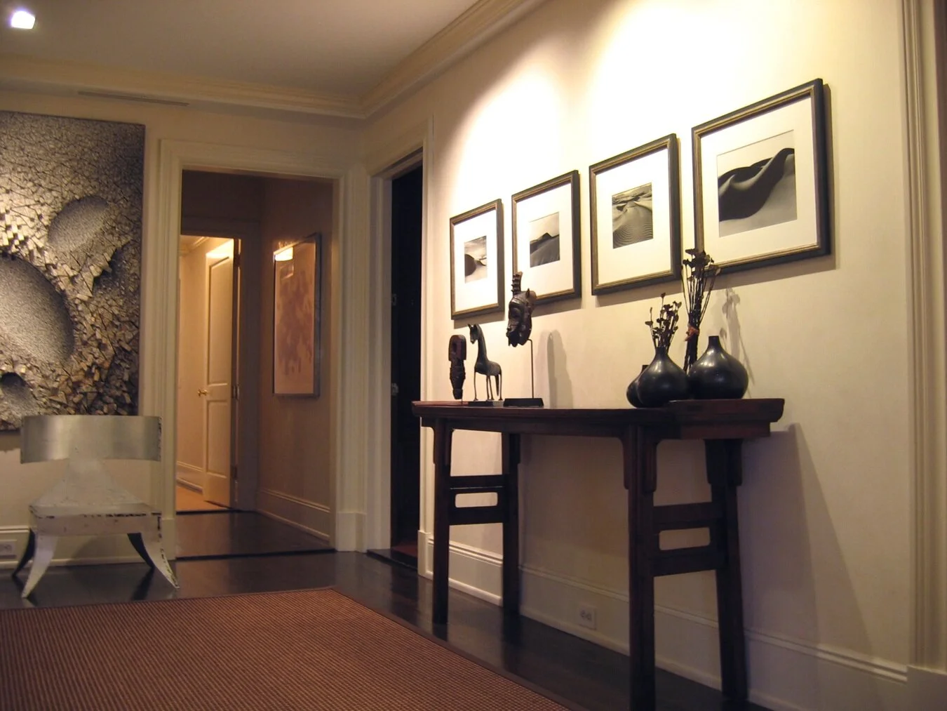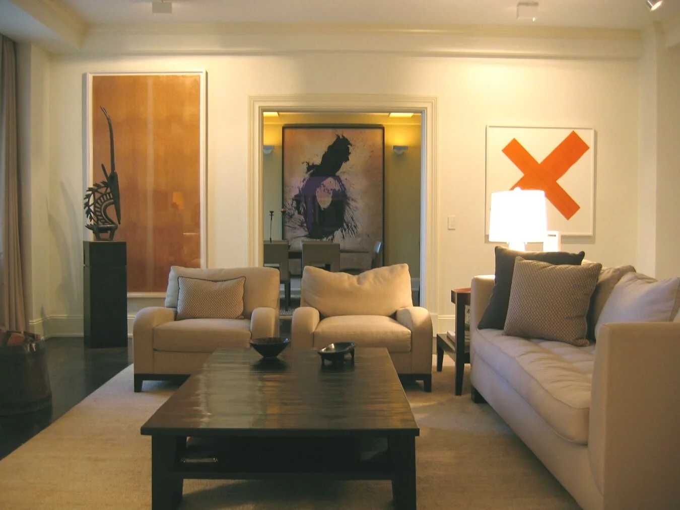 The client wanted the furniture in this city apartment to be a neutral grounding for their extensive art collection, which is the highlight. Their appreciation of art transfers to their appreciation of fine furniture and fabrics, making this home a true collaboration of the arts.